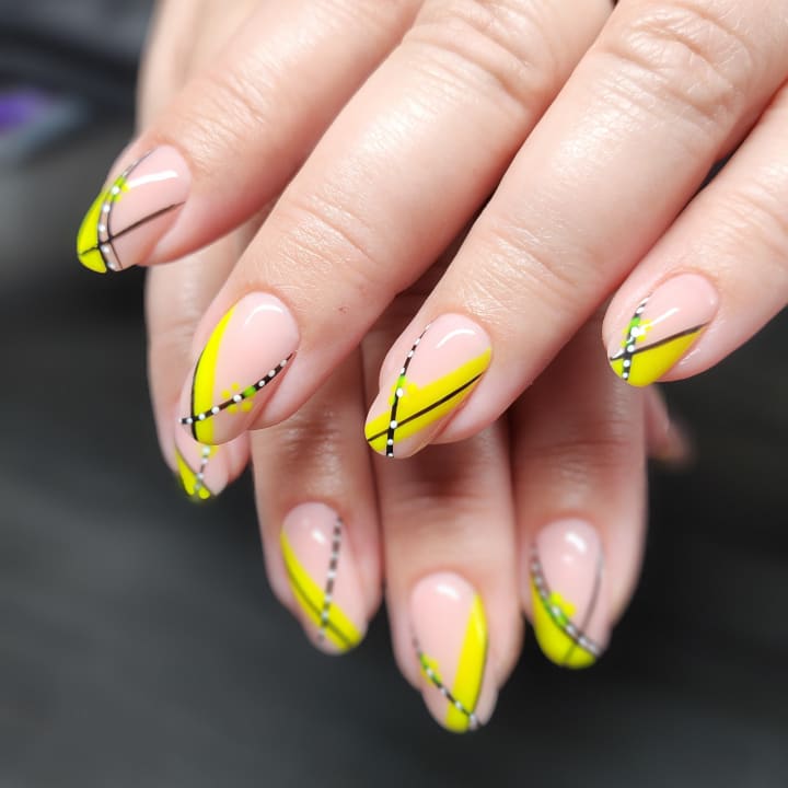 Geelilakkaukset kynnen vahvistuksella ja koneellisella manikyyrilla.